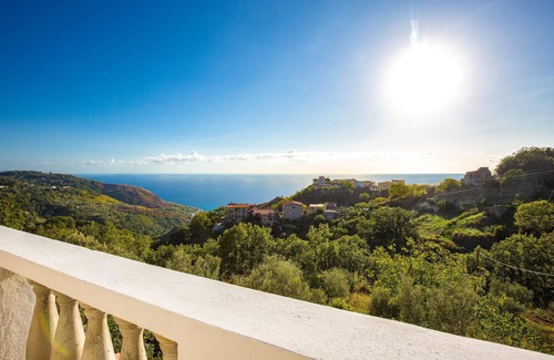 With a shared pool, this holiday apartment enjoys an elevated position with views of the Calabrian coast and the sea.