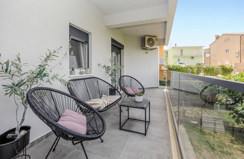 This charming first-floor holiday apartment offers everything you need for a relaxing family holiday. The modern furnishings create a cosy atmosphere, while both bedrooms have their own balconies with garden furniture, perfect for relaxing moments. The combination of comfort and privacy makes this apartment an ideal retreat in Split.