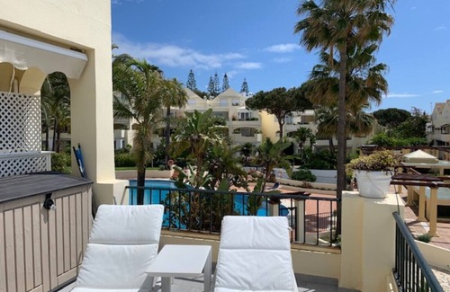 This spacious apartment enjoys a privileged position on the beachfront within the White Pearl Beach - Perla Blanca complex of Marbella. Located less than 50 meters from one of the best beach in Marbella, this tastefully decorated home enjoys all the comforts to spend a pleasant stay in a quiet and safe area. The complex enjoys direct access to the beach, a large swimming pool as well as pleasant green areas carefully maintained.