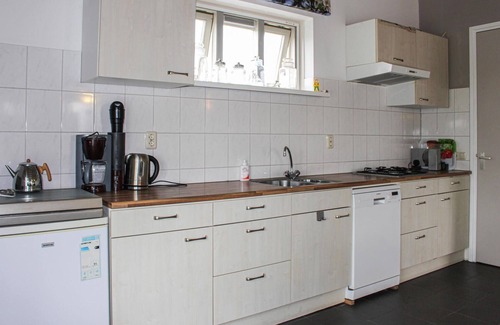 This beautiful large property consists of two buildings. In the main building you will find eight bedrooms, a living room, a bathroom and a kitchen. In the annex, 15m from the main house, you will find another bedroom, two bathrooms and a kitchen. This property was renovated in 2021 and is located in the middle of an apple and pear orchard, on the grounds of a farm. Here even large groups will find enough space for a relaxing and varied vacation in the relaxing Dutch nature. We do not rent to youth groups.