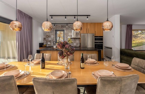 Enjoy the scent of nature and the tranquillity of the countryside and simply unwind in this inviting vacation home. The spacious vacation home is stylishly and comfortably furnished and offers you a wonderful setting for your vacation with the spacious living room or the private bedrooms with their own bathrooms. Relax and play in the living rooms or find your favorite terrace or balcony, read a book in the sun, dine together outdoors or start the day with yoga exercises. Afterwards, take a dip in the pool or sunbathe on the terrace.