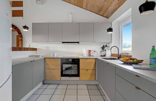 In the heart of Vejlby Klit lies this particularly well furnished vacation home. The practical kitchen and living room are open to each other. On the beautiful terrace in front is a barbecue, so you can also enjoy the outdoors. On both sides of the bathroom are the bedrooms. Your children will certainly be delighted with the sleeping loft of the house, because there is a playroom.