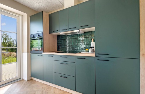 Located in the middle between Esbjerg and Vejle, your vacation home offers you a wonderful opportunity to enjoy the beauty and tranquillity of the Danish countryside. Spend a relaxing time here with the whole family. Your vacation home impresses with its modern yet cozy furnishings. The open kitchen is spacious and well-equipped for preparing meals together. Light colors and natural materials create an inviting atmosphere, and the large windows let in plenty of light. Enjoy the beautiful view of the garden while dining or relaxing in the sofa area.
