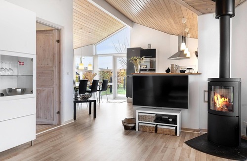 Welcome to your vacation home, where you can fully relax in the elegant ambience. In the stylish, open kitchen, the whole family can cook together and discuss the day's vacation plans. Spend cozy hours in the living room. Enjoy a refreshing drink and play card or board games or immerse yourself in a good book. The wood-burning stove adds to the cozy atmosphere. Outside, the spacious terrace is waiting for you to indulge yourself to the full. You can also enjoy a barbecue together in the open air. The adjacent soccer pitch is the ideal place for a small soccer tournament. Score the vacation goal of the month here.