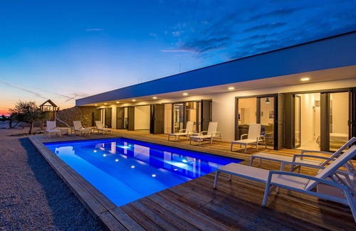 Beautiful secluded house on a very spacious plot in a natural environment with stunning panoramic views of the sea. The house is modernly furnished and offers everything you need for a pleasant vacation. Your vacation home with pool is an ideal refreshment on hot summer days. You can reach the great beach via a landscaped path, where you can swim all day. Whether you choose a day trip or longer stay on this unusual island, the variety of beautiful lagoons offers you a wide choice for an active and relaxing vacation. This island is also a world famous destination for young people due to the beach "Zrce", often referred to as Croatian Ibiza. Many clubs and bars on the beach host world famous DJs every year, bringing together a large number of young people looking for fun, music and entertainment. The island of Pag is truly an ideal destination for all generations. To the object leads an unpaved road of about 2.7 km on which there are several smaller gates that must be opened and closed by you. The gates were placed because of the sheep on the island, so you have to get out of the vehicle several times to close the gates.