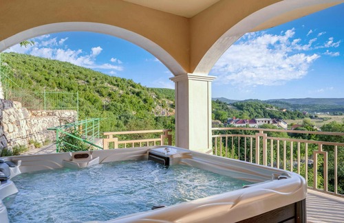This modernly furnished vacation home is located on the Mirlovic plain, at the source of the river Cikola (min. ceiling height on the 2nd floor is 170cm). From numerous terraces and balconies there is a breathtaking view of the spring and the natural beauty of the place. In the months of May and October the water starts to flow from the spring and this phenomenon can be admired from the terrace of the house. The river dries up during the summer. The house is equipped with everything you need for a pleasant vacation. There is also a sauna where you can relax and forget the worries of everyday life. On the fenced property there is a large barbecue where you can prepare delicacies and also a pool that will bring the necessary refreshment. You should not miss taking a tour of the place, as it has a lot of natural phenomena and beautiful scenery. We also recommend trips to the interesting cities of Sibenik, Split and Zadar, which are cultural and economic centers of the regions.