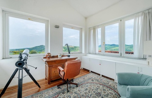 Beautiful vacation home with private pool, indoor sauna and large green areas in the middle of the hills of Tortona and with an enchanting view of the surrounding vineyards of Monferrato (UNESCO World Heritage Site). This is a strategic place to relax after your daily excursions and to get to know the local culture and excellent gastronomy. A few kilometers away by car you can visit characteristic villages surrounded by cultivated fields, churches and medieval castles, because the territory of the nearby Langhe, Roero and Monferrato is a microcosm of different environments where man and nature go hand in hand. Walking along these rolling hills, do not miss tasting typical products such as wine, salami, cheese and real truffles that attract tourists from all over the world throughout the year. For sports enthusiasts there are opportunities for horseback riding and mountain bike trails in the immediate vicinity, and for golf lovers there is an 18-hole golf course less than 10 km away. Given the location, a visit to the cities of Milan and Turin is a must, as well as a day at Lake Maggiore and Lake Orta. In less than 80 km you can reach Genoa with its charming historic center and the great aquarium, then you can enjoy a swim in the crystal clear waters of the Ligurian Sea in both the western and eastern province.