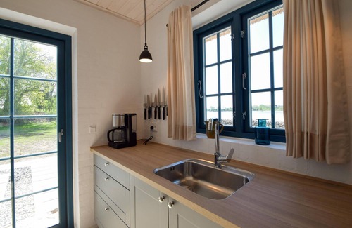 There are large rooms and bathrooms here, as well as a large kitchen and living room. There is also a conservatory with the best view of the Odense Fjord. From the house you have access to terraces with good garden furniture. The house is completely undisturbed by a nature reserve and Hofmannsgave Castle is nearby with its park-like garden and potato museum. If you like fishing, you have the possibility to fish directly from the property, as a small river flows by here.