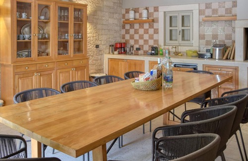 The main house has 3 en-suite bedrooms. The small villa has 2 bedrooms with en-suite bathrooms. All rooms are equipped with air conditioning and TV. Each villa has a fully equipped kitchen and dining area.