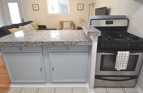The entire unit has no carpet and is floored with a great wood grain laminate or tile. This unit is on the second floor and close to the parking lot and street so its very easy to get in and out of. Guests get one reserved parking spot and there is also parking available on the street. Have a great night's sleep with a comfortable mattress!