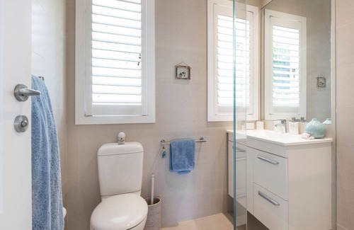 As you walk down the garden path towards Azzurro you can hear the sound of waves washing up on the shore below. Located on the coast between Bungan and Newport beaches, this pretty beach house with its spectacular views, wet-edge pool, timber decks and beautifully landscaped gardens will have you feeling on holiday before you have even unpacked your bags. Stepping through the front door, your gaze is immediately drawn to the blue horizon. It beckons you out to the deck where you take in the expansive sky and ocean views right up to the Central Coast. Enjoy swimming in the pool, lying on the grass or napping on a deck chair.
