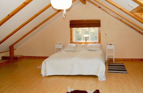 "Bäcklunda", 6-room house 135 m2 on 2 levels. Cosy furnishings: living room with Scandinavian wood stove and satellite TV. Exit to the veranda. 1 room with 1 double bed (160 cm). 1 room with 1 double bed (160 cm). Dining room with 1 sofabed (160 cm, length 200 cm), dining table. Kitchen (4 hot plates, oven, dishwasher, microwave, freezer, electric coffee machine) with dining table. Shower/WC. Upper floor: living/sleeping room with 1 double sofabed. 1 room with 1 bed (140 cm, length 200 cm), 1 french bed (180 cm, length 200 cm). Sep. WC. Heating. Terrace partly roofed. Terrace furniture, barbecue (portable). Facilities: washing machine, iron. Internet (WiFi, extra). Please note: one double bedroom is outside the apartment. Non-smoking house. Smoke alarm, fire extinguisher. Freezer approx. 100 l.