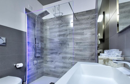 • private stylish bathroom: basin, bidet, WC, shower