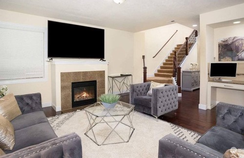 Upscale Townhome with Three Levels: This upscale and stylishly decorated townhome is located just minutes from Bothell's downtown area and offers easy access to major highways. The home features three levels, including a master en-suite, a loft area, and a dedicated office space. The spacious living room has comfortable seating and a fireplace for cozy nights in. The fully equipped kitchen has everything you need to prepare meals at home. Enjoy your staycation on the private patio with outdoor seating.