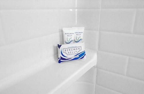 Off the main living space, you'll discover a spacious bathroom, designed with modern amenities to provide you with a refreshing and comfortable experience. Plush towels and a starter set of complimentary toiletries are provided for your convenience.