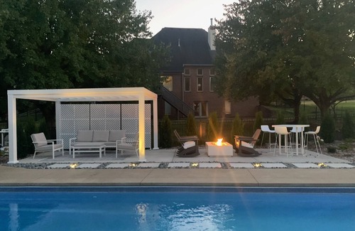 Beautiful 5000 sq ft estate with 5 bedrooms and 5 full en suite baths. Large newly renovated dream kitchen with giant entertainer's island opening to family room with 20-foot ceilings and expansive windows overlooking the private pool and backyard . Plenty of space for a large group, with each bedroom having its own connected bathroom for maximum privacy. Finished basement with bourbon bar, plenty of games, and an entertainment space with large screen TV. Resort-like backyard with heated outdoor pool, private pergola with lounge furniture, modern fire pit, and covered back deck with dining table and outdoor TV. Driveway is large enough to park up to 5 cars. The property is located 15 minutes from downtown and Churchill Downs, and less than 15 minutes to Valhalla Golf Club. Home is minutes from shopping and dining at the Paddock Shops.