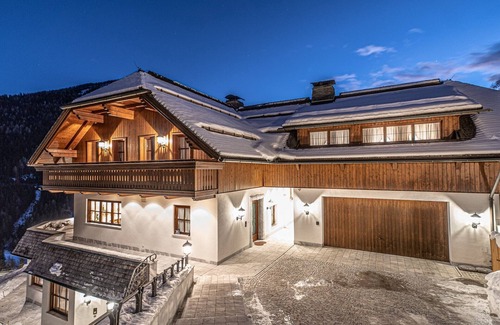 The "Lush and Spacious Villa with Indoor Pool and Wellness" in Bad Kleinkirchheim, Carinthia, Austria, is a luxurious property offering an exceptional vacation experience. Indoor Pool and Wellness Area: The villa includes a private indoor pool and a wellness area with amenities such as a sauna and hot spring bath, making it a perfect retreat for relaxation. Accommodation: With several bedrooms and bathrooms, this villa can comfortably host large groups or families. It's designed for privacy and comfort, offering ample space for up to 16 guests. Private Wine Cellar: A wine cellar is available, perfect for those who enjoy fine wines during their stay.