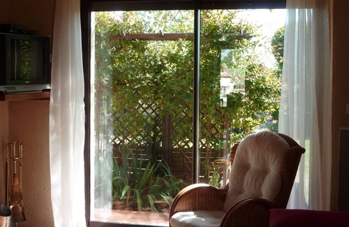 For cool days, the fireplace is equipped with a heat distributor to the other rooms.