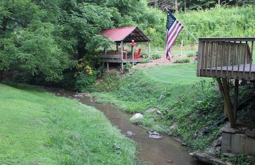 Whether you are looking for a couples' get-a-way or a place for the family to stay, Baker's Cottage is the perfect place to kick back and take a break from the hustle and bustle of life. We have a covered front porch for you to sit and relax while you enjoy your morning coffee. The sunroom and back deck offer a nice view of the spacious backyard and where you can listen to the peaceful sounds from the babbling creek. The backyard and creek are a great place to take a stroll, play games, cool off in the water, catch fireflies, or roast marshmallows while gathered around the fire. A gazebo overlooks the creek and cottage offering a place to play games or just sit and relax. The cottage is just a short 2 minute walk from the New River and only a 15 minute drive to the town of West Jefferson where you can find food, shopping, Mt. Jefferson State Park, and Ashe County Cheese. Various river outfitters are close by (10-15 minutes away) where you can rent tubes, canoes, or kayaks. Looking for a day trip during your stay: Grayson Highlands Park, Virginia Creeper Trail, Appalachian State University, Stone Mountain State Park, Tweetsie Railroad, and various ski resorts are all less than an hour away.