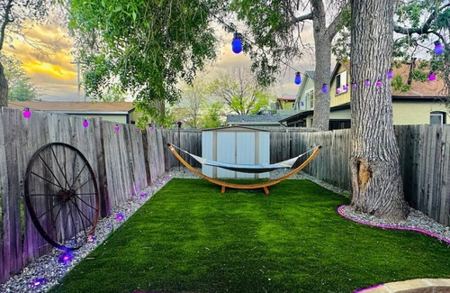 Enjoy your private outdoor retreat with a fully fenced in yard, grass area with hammock, outdoor lighting and the cozy patio with comfortable seating. Roast marshmallows over the fire pit or sip a beverage over fire side chats under the stars!