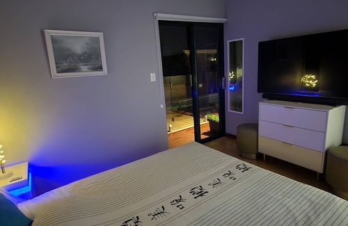 The BALI Room has direct access to swimming pool in a waterfront property with private jetty on Hindmarsh Island. Gateway for nature lovers to the stunning Coorong National Park, Goolwa Beach and the Murray Mouth. 6mn drive from the lovely town of Goolwa.