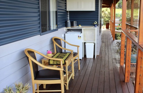 The Camellia Suite is part of the main house with seperate entry and private bathroom, "Please note" the kitchenette on the verandah has a microwave, bar fridge, basic kitchen items plus table and chairs but NO cooking facilities.