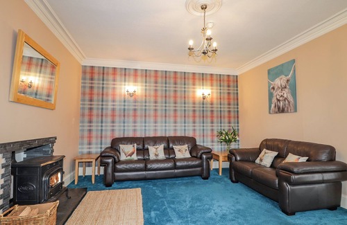 The living areas in this property consist of a kitchen/diner with an electric range cooker with oven and gas hob, microwave, fridge/freezer, washing machine, and dishwasher, a dining room, a living room with TV and woodburning stove, a sitting room with TV, DVD and surround sound system, a conservatory, and a cloakroom. All bedrooms have TVs and en-suites, consisting of a king-size, a double, two twins, and a family room. Outside there is a front lawn, and a rear shared garden, along with a private driveway for up to 10 cars. This is a pet-free and smoke-free property. You'll find a shop in 0.3 miles and a pub in 5.5 miles. WiFi, fuel, power, bed linen and towels are all included in the price. Balloan House is a grand dwelling, the perfect base for exploring the Scottish Highlands.