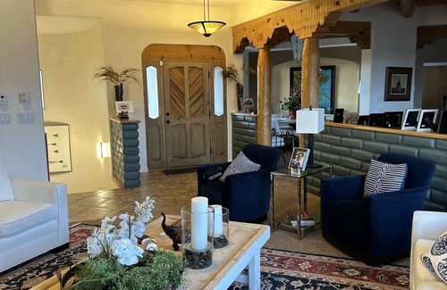 Balloon Fiesta Getaway - Adobe Hacienda is located in Ranchito. Balloon Fiesta Getaway - Adobe Hacienda provides accommodation, featuring Security/Safety, Bedding/Linens, Wellness Facilities, among other amenities. This House features Security/Safety, Bedding/Linens, Wellness Facilities, to make your stay a comfortable one.