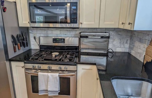The Kitchen is fully equipped for family cooking with an airfryer, toaster, 2 coffee makers, and plenty of dishes and cooking supplies!