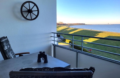 Enjoy the fantastic view from the fourth Stock on the Elbschifffahrtsweg and Kugelbake the landmark of Cuxhaven. A direct path leads you to the beach in Green Bay Grimmershörner.