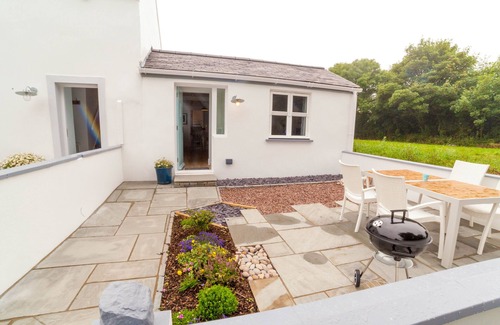 An idyllic 2 bedroom cottage near to breath-taking beaches with enclosed quaint patio garden and parking all set in the grounds of a 250 year old farm house with a long history in the quiet, seaside village of Manorbier.