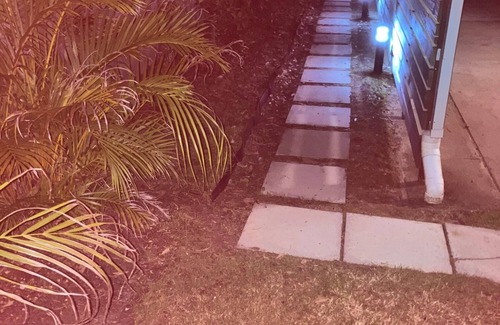 Well-lit path to entrance