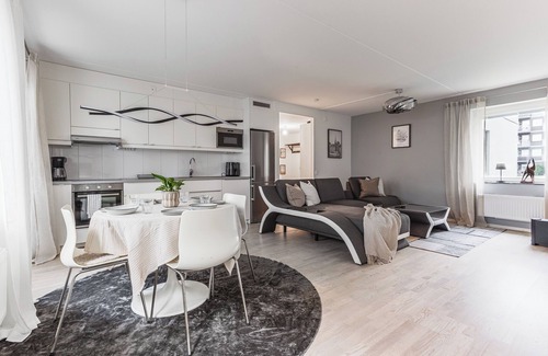 Best-rates for the Barkarby Large New Apartment starts from $102 per night with includes Wellness Facilities, Fireplace/Heating, Child Friendly, Internet, Laundry, Security/Safety, Bedding/Linens with all other facilities. Vacation Cottage™ provides a diverse array of lodging choices for every kind of traveler. We aim to pair each traveler with their ideal cabin, resort, or rental, ensuring a pleasant and satisfying stay with all necessary amenities.