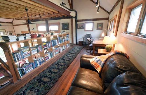 This is the ideal get-away for a weekend or a few weeks. You'll see no neighbors, wake up to the sun rising over the rolling fields, sip your coffee at the table on the balcony--with great views to the surrounding 100 acres--relax on the cozy couch and (on a cold day) watch the fire roaring in the wood stove, take a break to watch the birds from the huge wall of windows, spend a couple of hours browsing through the library on the second level, where you'll find all kinds of great books, then pop a DVD into the player downstairs and watch a classic movie--selected from the large in-house DVD selection--or stream a movie from the free wi-fi. And, if you want a little exercise, walk the grounds, where you'll find all kinds of natural treasures: a huge array of flowers and plants and some old trees of historic proportions, including one of the biggest beech trees in the state.