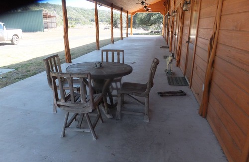 Ambush Hill Barn Guest Quarters, Kitchen, Dining area, Living area, all small with bathroom and two bedrooms all doors open to barn pavilion and horse stalls with no horses. Outdoor pavilion with barbecue pit and fire place. All new facilities. Air-conditioning in living and kitchen area. Ceiling fans in bedrooms with heaters and air-conditioning.. Wonderful view overlooking crystal clear spring-fed creek and mountain views. Swimming and fishing in Bullhead Creek which runs through the ranch. No TV, WiFi or cell phone service. Land line available nearby. Beauty and privacy, unique property.