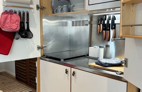 Prepare a home-cooked meal in the kitchen, complete with a stovetop and a refrigerator, as well as a coffee maker, an electric kettle, and a microwave. Bathroom amenities include a hair dryer, towels, and toilet paper. And because there's a washer and dryer, you can go a bit lighter on your packing. Other amenities include bed sheets, an ironing board, heating, and change of towels on request.