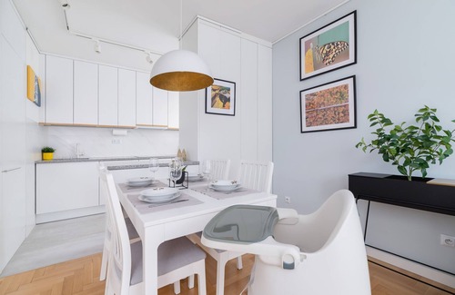 The apartment is located in a green and quiet district of Krakow - Swoszowice. It is a place that combines atmospheric tranquility with a modern, metropolitan character. The neighborhood meets all the daily needs of our guests - the nearest grocery store is only 130 m from the building. The location on the outskirts of Krakow guarantees peace and quiet, and allows you to spend sunny afternoons on lazy walks among the low-rise buildings or in the nearby parks. The park by the fort ''Borek'' is located just 1 km from the apartment. The proximity of bus stops provides excellent communication with the city center, which is famous for its many beautiful monuments, as well as its rich cultural and entertainment offer. The Airport is 15 minutes from the apartment (18.2 km), while the Krakow Central Railway Station is about 25 minutes away (13.5 km).