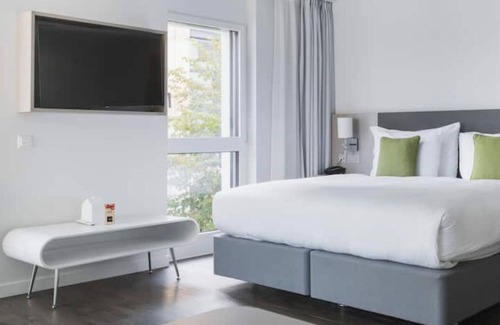 This spacious apartment features free Wi-Fi, a table for 4, a separate desk, and a 102 cm connected HD TV. The bedroom includes a king-size bed with pocket-spring mattress, sofa bed, coffee table and reading light. The fully equipped kitchen features a dishwasher and Nespresso coffee machine. The bathroom offers a rain shower and heated towel rail. The large picture windows are fitted with blackout blinds for added privacy.