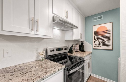 Enjoy a stylish experience at this centrally-located 1st floor place within walking distance to the campus of Texas A&M. With contemporary furnishings, comfy king sized beds, SmartTV with access to log into your favorite apps, a custom kitchen and a location central to all of Bryan and College Station, this short-term rental has it all. It even has convenient parking...right outside the front door. It doesn't get any better for your stay in Aggieland.