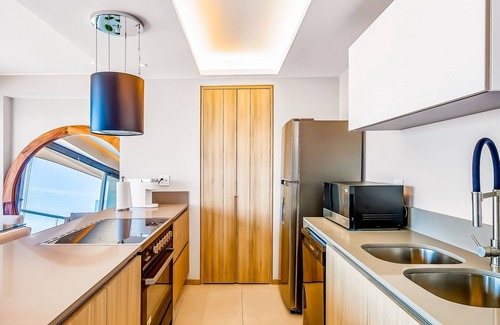 The coastal playland of Playa Bucerias is yours to enjoy when you book this beautiful beachfront condo. Along with a prime location directly on the sand, you'll have complimentary access to some fabulous resort-style amenities including a rooftop pool and lounge area, a ground-floor pool, a fitness center, a sauna, and a game room. Amazing bay views extend throughout the condo and out to each of the private balconies. Fantastic bars and local restaurants are within walking distance. Flamingos Golf is less than three miles away.