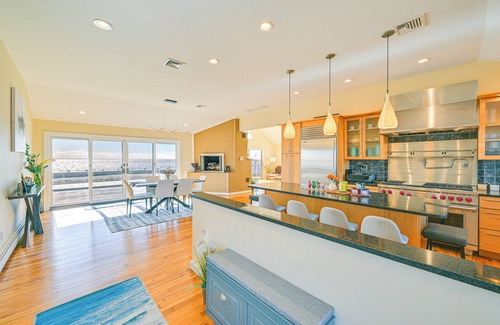 Let the salty breezes of Patchogue Bay drift you away, and book this impressive 3-bedroom, 1.5-bath vacation rental. The home is adorned with large, ocean-facing windows, so you can enjoy the views while dining or relaxing with your loved ones. When the sun peaks in the sky, cast your line from the dock or lounge on the deck. Ready to venture? Hop on the ferry and explore the wonders of Fire Island!