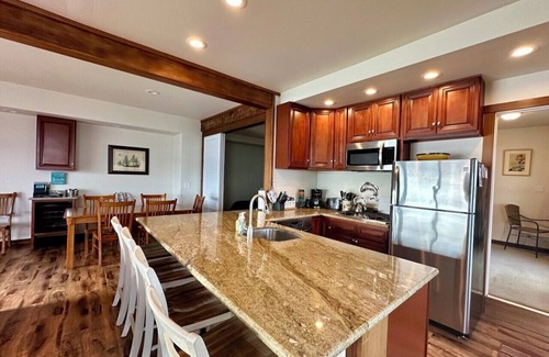 Our home has a large open kitchen with gas stove, full oven, dishwasher and microwave. Hightop bar stools and huge granite island. Enjoy the views while preparing a meal or brewing a cup of coffee!