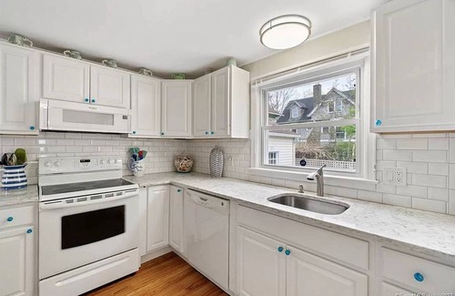 The kitchen is fully equipped with everything you’d need to cook all of your meals at home (Aldi and Stop & Shop are 2.5 miles away)