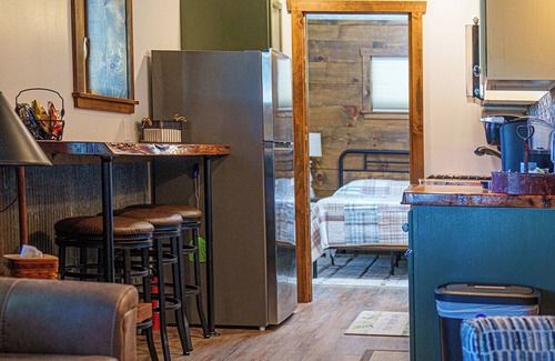 Walk into a little country oasis. The living room has a gas fireplace that can be used from October - April. Galley kitchen with a full size refrigerator, gas stove and a microwave. We have installed live edge counter tops in the kitchen with bar seating. There is also a small dining table and chairs. Main floor bedroom has a king size bed, and the bathroom has a walk-in shower, make-up area and live edge/river countertop. The loft area has 2 twin beds and a queen size bed.