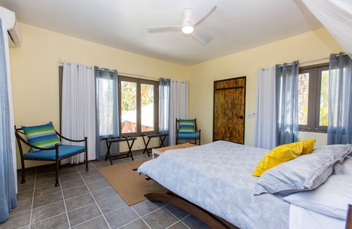 The large second story bedroom has a queen size bed with a firm but luxurious temperpedic mattress, two sets of sheets and nice private closet. Chest of drawers as well as luggage racks are provided as well as decorative as well as netting over the bed.