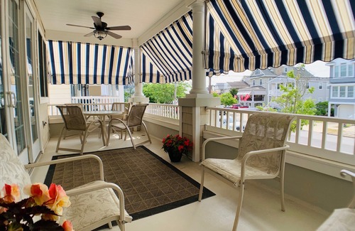 This spacious Condo is immaculately kept in the residential Gardens section of Ocean City. The large front deck is equipped for outdoor dining and leisure time above the peaceful, tree lined street. In addition, there is a rear deck overlooking the fenced-in backyard, where guests can BBQ while the family enjoys the fresh ocean breeze. Indoors, you'll enjoy the modern yet cozy decor, complete with a large, open air custom painted living area. An added bonus is the 50 inch flat screen TV above the brick fireplace and free high speed WiFi Internet.
