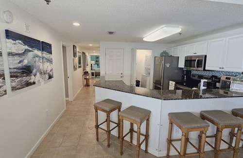 The living room furniture is very comfortable and the spacious dining area offers seating for your entire party. The living room and master bedroom adjoin the balcony. The kitchen is fully equipped, just bring the food and your paper goods products.