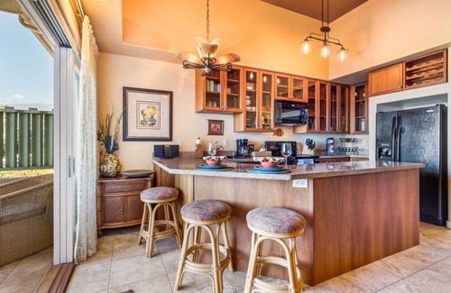 Stop by Costco and stock the kitchen to enjoy many prepared meals out on the ocean view Lanai. The condo has a beautiful tropical island decor with multiple large screen TV's, and usb charging stations in each room. The triple french door open air lanai off the kitchen and master bedroom is a great place to enjoy the ocean breeze, breakfast, sunset views or just fall asleep to the gentle ocean waves. There is a washer and dryer in the condo for all your laundry needs. The AC will keep you cool during those warmer summer nights. The condo also offers a spectacular infinity pool with ocean and beach views with a shallow water entry perfect for sunbathing and small children. The pool area also features a BBQ/Picnic area, lounge chairs, and a lava rock in-ground jacuzzi to enjoy those incredible Hawaiian views. The unit comes fully stocked with beach chairs, boogie boards, umbrellas and more. Highchair and portable playpen available upon request. No need to rent. There is elevator access and ample off street parking.