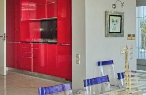 This luxurious villa has a dramatic view of the island of spetses and is-in walking distance from the best beach of the area . Decorated with modern Philip Stark disign interior