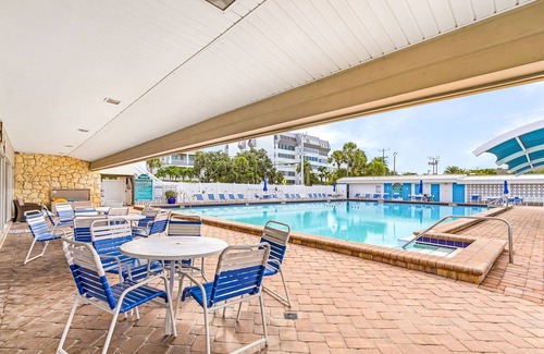 Largest Pool on Siesta Key: Dive into the expansive, sparkling pool surrounded by a large lounging deck with plenty of poolside lounges, tables, and chairs for ultimate relaxation.
